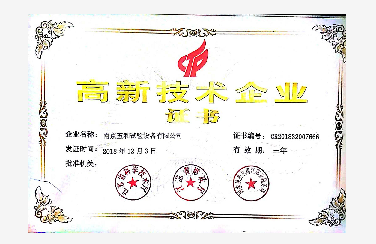 2018高新技術企業(yè)證書